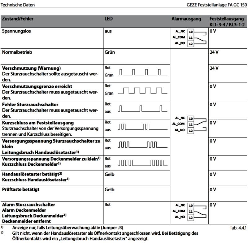 Das GEZE Raucherkennungsteil GC 151 gib bei einen Fehler die Meldung über die LED aus.Fehlermeldungen entnehmen Sie bitte der folgenden Tabelle